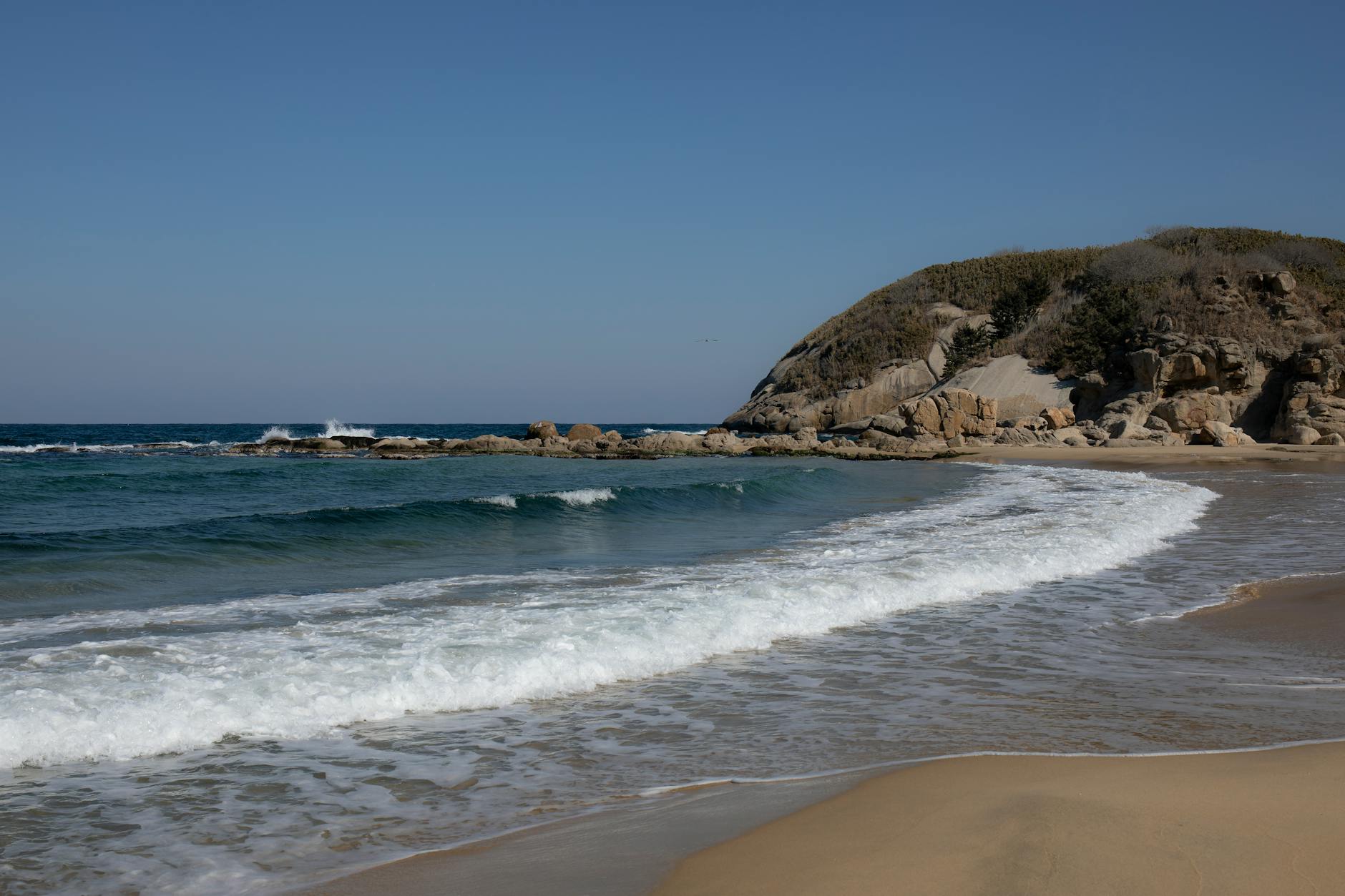 A beautiful beach wedding setup featuring a floral arch and ocean view.